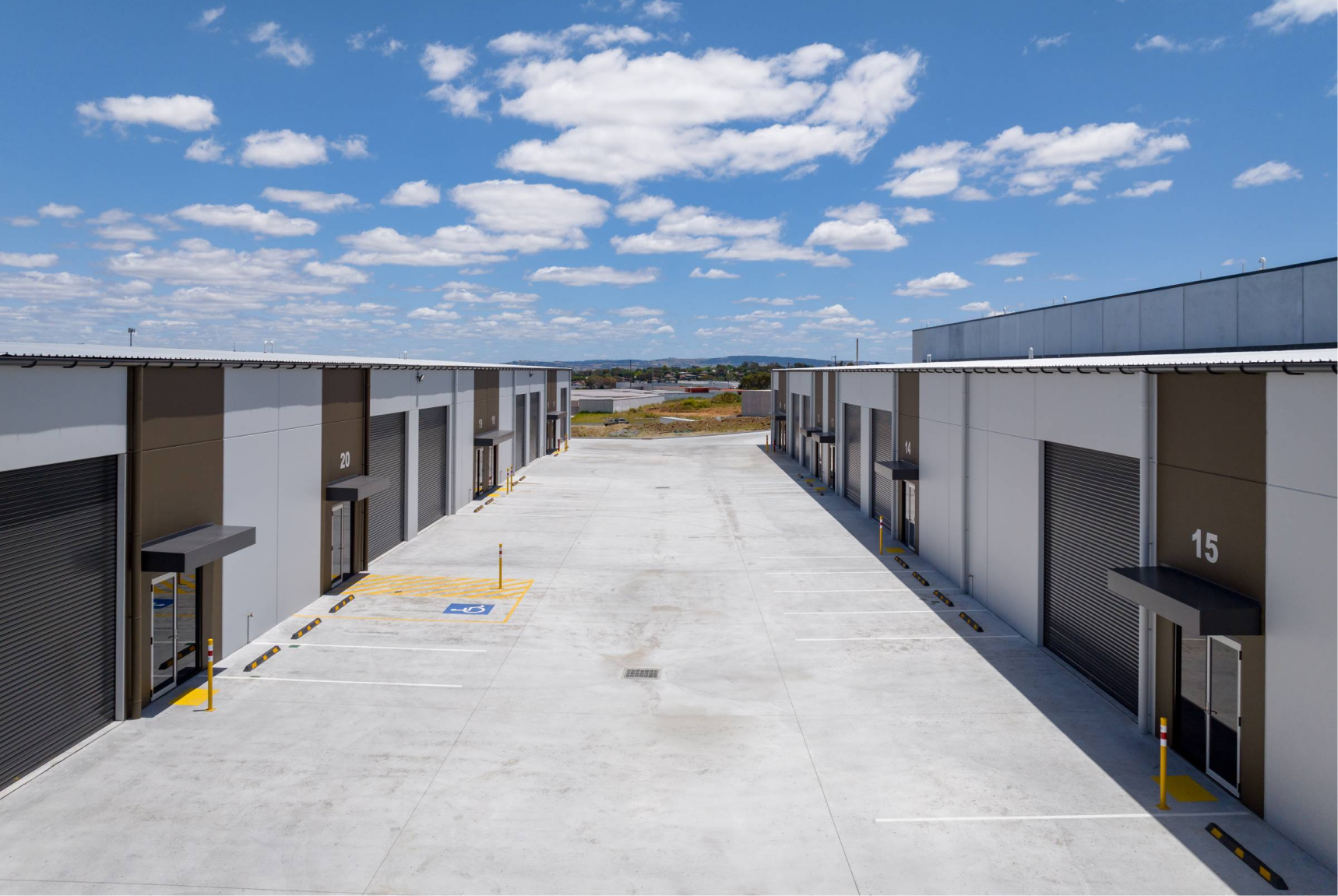 Purpose-built to respond to strong demand for strata industrial space in Kelso, the 20-unit complex was designed to maximise functionality across the 7,726 sqm site while maintaining efficient circulation and clear access for heavy vehicles. Each unit includes designated parking, modern architectural detailing and secure full-height precast concrete construction, creating a cohesive industrial environment that balances durability with professional presentation and long-term asset value.