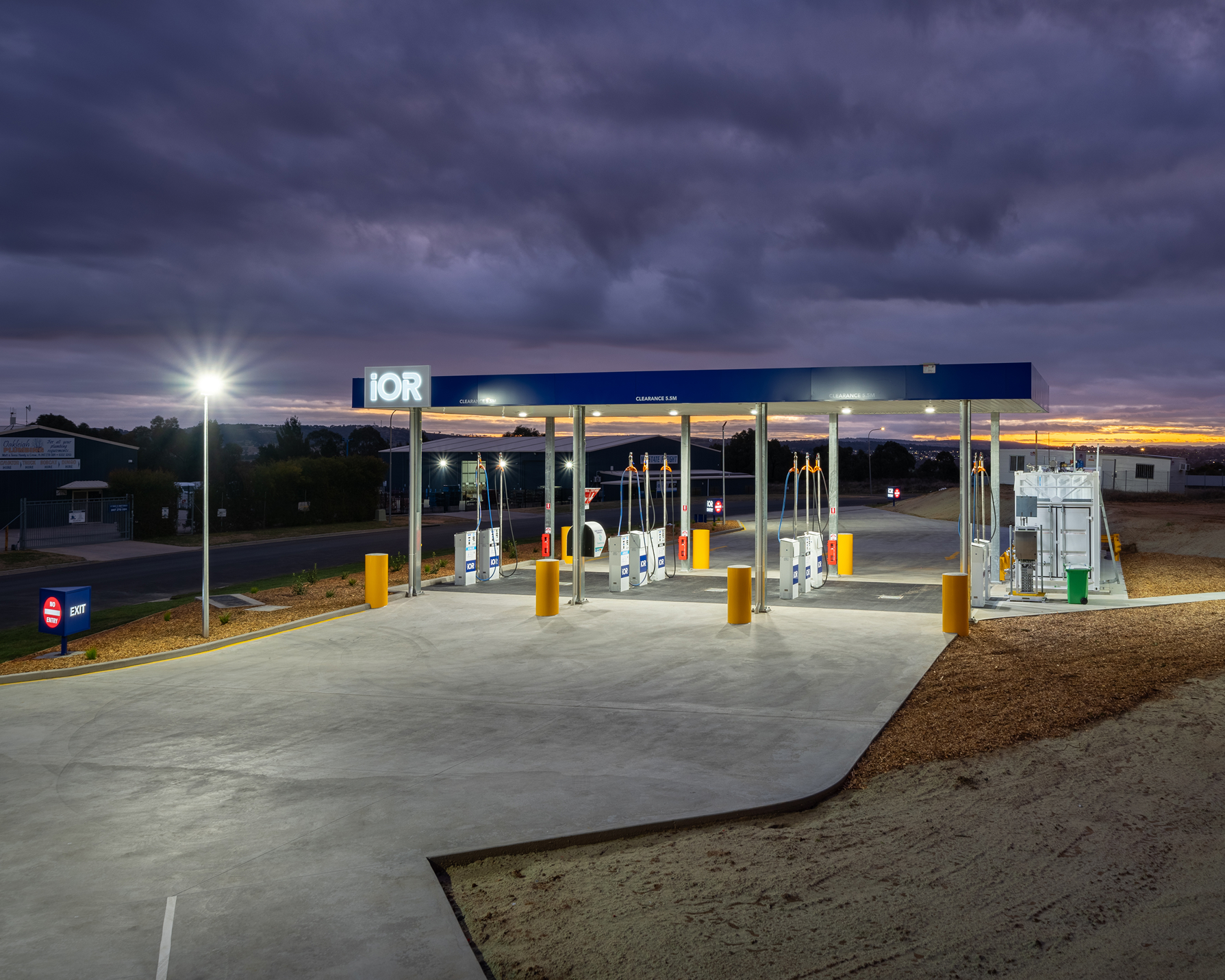 The 2,000 sqm site features 12 tonnes of structural steel supporting a 5.5 m high canopy, providing structural integrity and clearance for large vehicles. Clear entry and exit points on a corner block enhance accessibility, while modern fixtures and integrated landscaping create a visually appealing facility. By creating a high-quality, durable structure, the project helps iOR establish a strong presence in the Bathurst region while meeting both operational and customer needs.