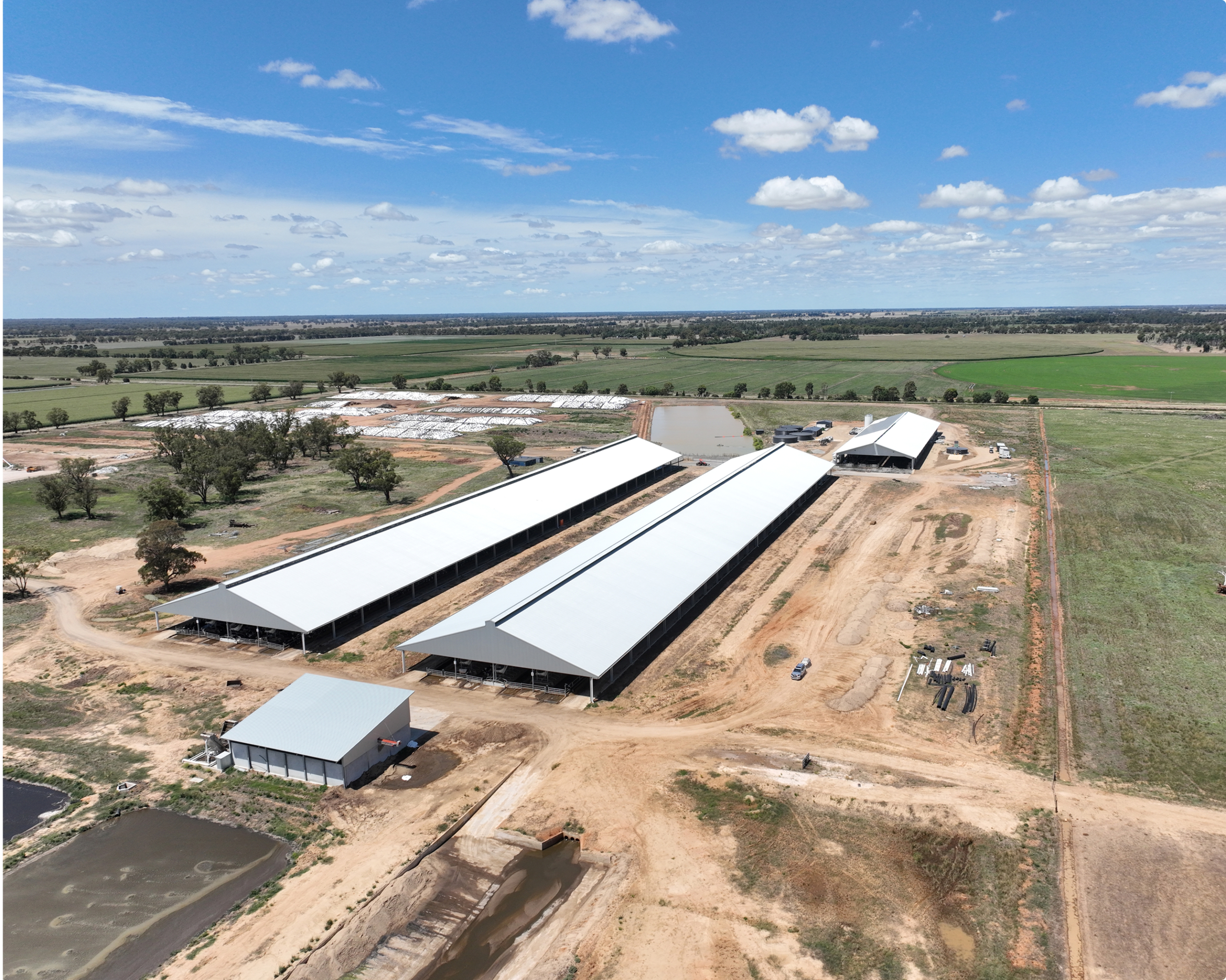 Deep, clean sand bedding and automated fans with temperature and humidity sensors ensured cow comfort in any conditions. We also designed and built a commodity barn and water recycling systems to manage manure and water, making the facility self-sufficient year-round.
